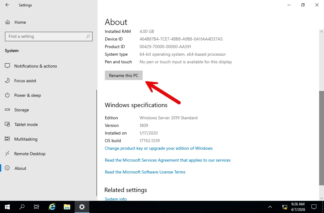 از طریق دکمه استارت وارد تنظیمات سیستم شوید و از منو About مطابق تصاویر زیر و Rename This PC نام نمایشگر را تغییر به kiosk-xxx تغییر دهید. xxx کد شعبه است (مانند kiosk-147). در صورت نداشتن این کد، از رییس و یا کارمند شعبه سوال نمایید. صحیح وارد کردن این نامه اهمیت زیادی دارد. بعد از اعمال تغییر، حتما سیستم را ریاستارت نمایید و چک نمایید که نام به درستی تغییر کرده است.