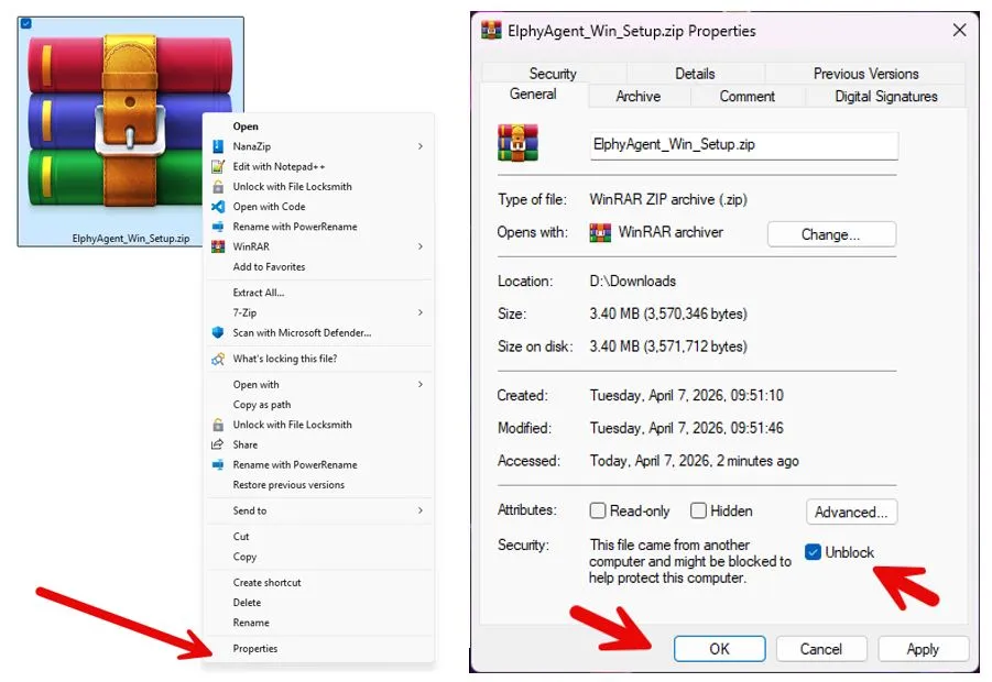 با راست کلیک بر روی فایل زیپ و وارد شدن به منویProperties مطمئن شوید که گزینه unblock وجود نداشته باشد، در صورت وجود داشتن آن را انتخاب و اوکی کنید تا فایل unblock گردد.
