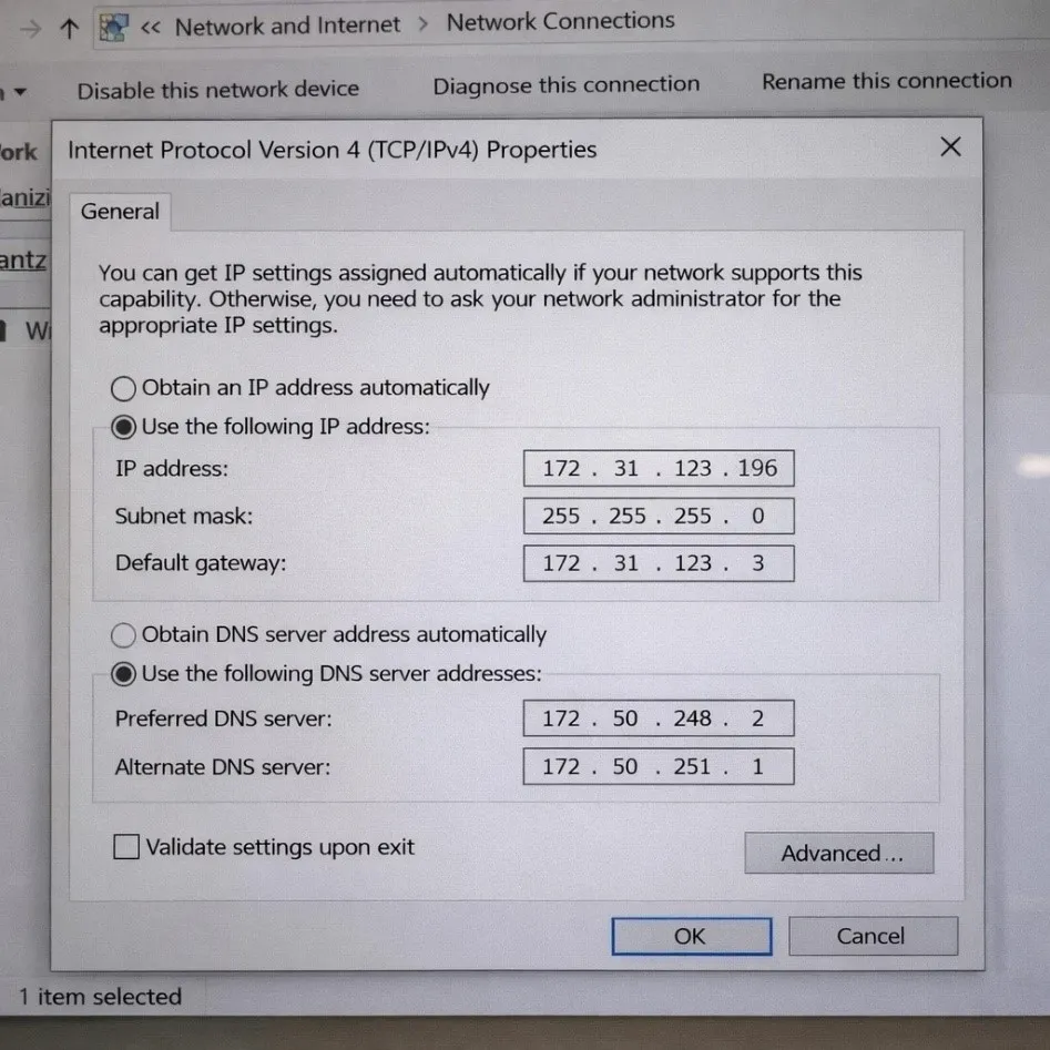 - گرفته شدن IP با پارت چهارم 196 توسط سیستمی دیگر در شعبه. این موضوع را با گرفتن ping بر روی یک سیستم متصل به شبکه مانند کامپیوتر مسئول باجه تست کنید. در صورت پینگ داشتن 196، عدد 198، 199 و یا عدد دیگری را انتخاب کنید.