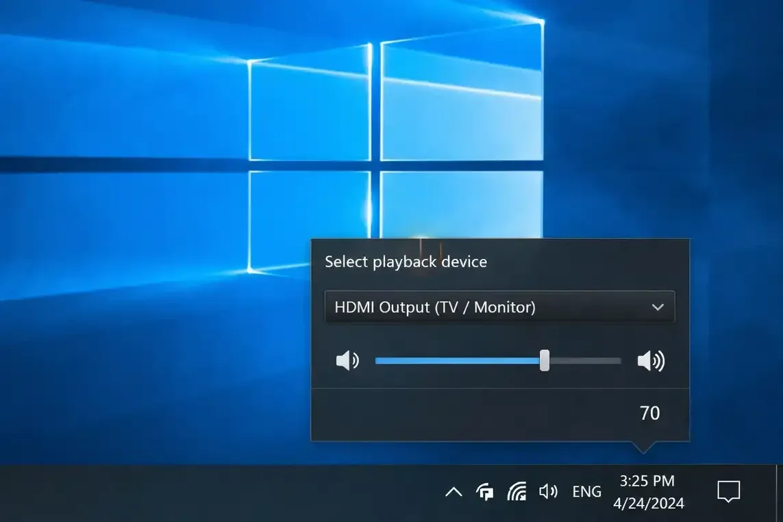 از آن جا که صوت فراخوان نوبت هم از طریق تلویزیون پخش میشود از باز بودن صدای کامپیوتر و تلویزیون مطمئن گردید. همچنین از صحیح بودن خروجی صدا (HDMI Output) با کلیک بر روی آیکون صدا در کنار ساعت ویندوز مطمئن شوید.